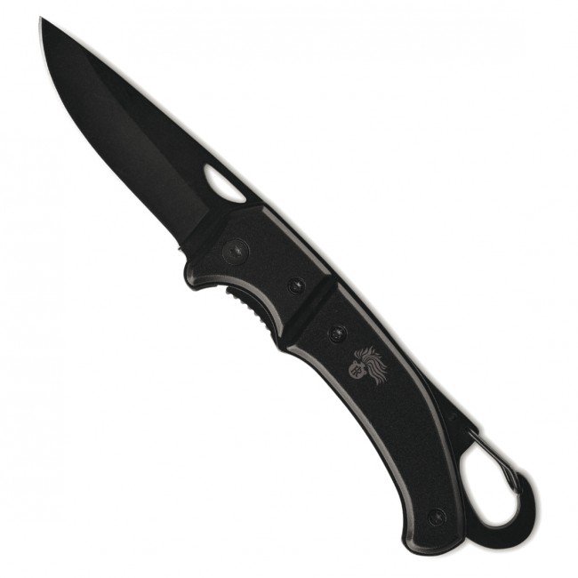 Coltellino pieghevole in aluminio con moscchettone.