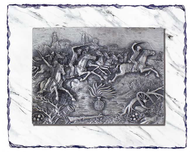 Fusione in peltro montata su lastra in pietra sublimatica.